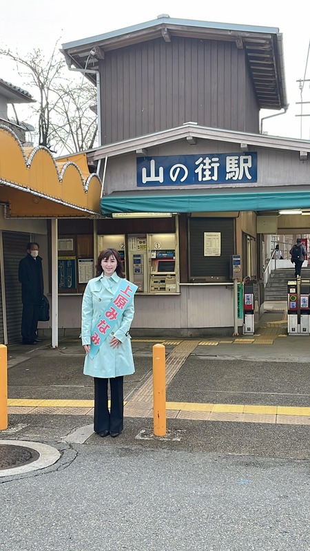 今朝は、やっと神鉄山の街駅で市政報告活動をしました。