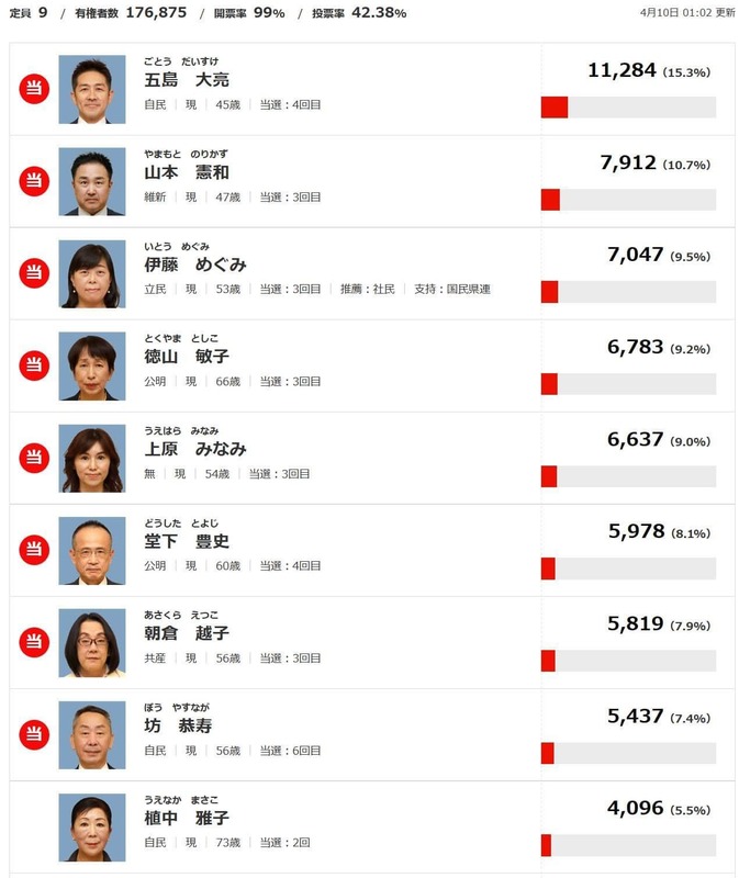 本当に、完全無所属での当選で、前回の得票より2600票以上多く頂くことが出来ました。